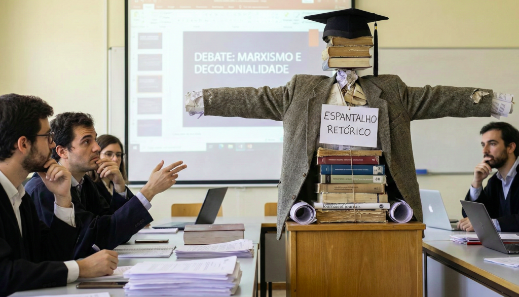 Nos últimos dias o certame intelectual brasileiro tem sido tomado por uma série de ataques ao pensamento decolonial. A recente ofensiva manifesta-se menos como um dissenso teórico fundamentado e mais como uma reação sintomática de saturação de uma vertente pragmática, herdeira de leituras de um marxismo ultraortodoxo. O que temos presenciado é um comportamento reiterado que substitui o rigor do debate conceitual pela aplicação genérica e canastrona de “identitarismo”. Um proto-conceito, ou para usar um termo mais da moda, um espantalho retórico, mobilizado para simplificar divergências teóricas complexas e evitar o enfrentamento efetivo das questões levantadas pelas críticas decoloniais à universalidade abstrata da teoria social moderna.